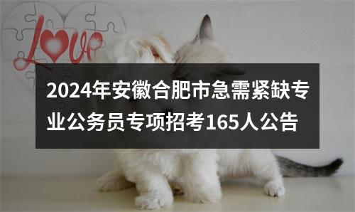 根据公务员法、《公务员录用规定》和《安徽省公务员录用实施办法》等法律法规,合肥市决定组织实施2024年急需紧缺专业公务员专项招考工作。全市共计划招录公务员(含参照公务员法管理单位工作人员,下同)165名。现将有关事项公告如下: