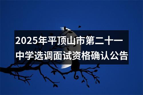 根据《2025年平顶山市第二十一中学公开选调工作人员的公告》,经过网上提交报名材料、资格初审、笔试,进入面试资格确认。现将面试资格确认有关事项公告如下: