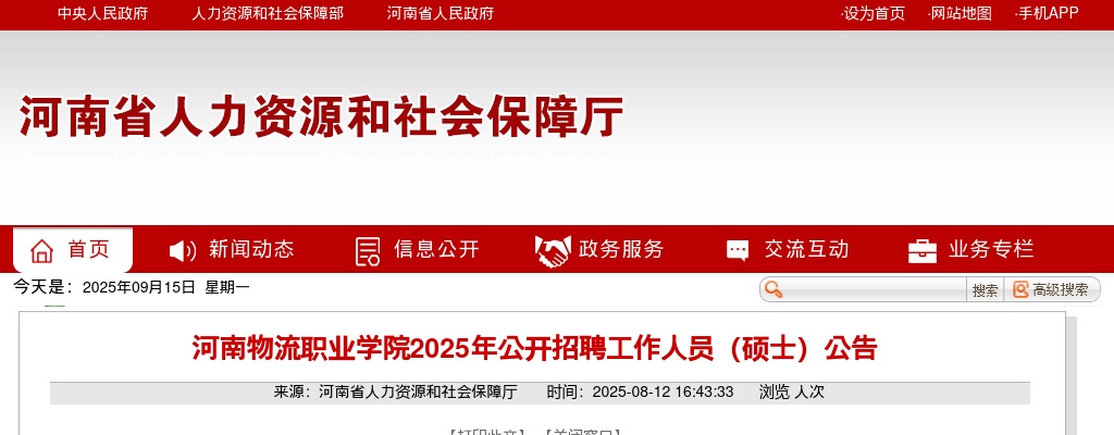 原标题:河南物流职业学院2025年公开招聘工作人员(硕士)公告