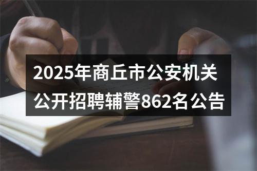根据工作需要,2025年商丘市公安机关面向社会公开招聘辅警862名(其中男性634名、女性228名)。现就有关事项公告如下: