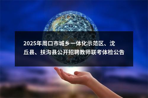 原标题:2025年周口市城乡一体化示范区、沈丘县、扶沟县公开招聘教师联考体检公告