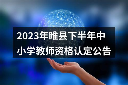 为保证2023年我县教师资格认定工作依法有序实施,根据《商丘市2023年下半年中小学教师资格认定公告》要求,结合我县实际情况,现就睢县2023年下半年中小学教师资格认定工作有关事项公告如下:一、认定对象